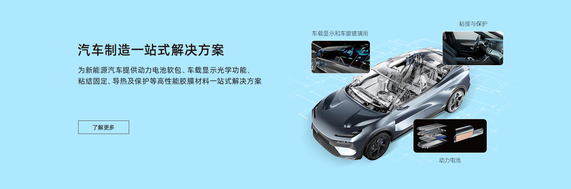致力于為汽車制造、消費(fèi)電子、智慧顯示端口等行業(yè)客戶提供包括新能源材料、電子功能材料、光電顯示材料、有機(jī)硅材料在內(nèi)的產(chǎn)品研發(fā)、生產(chǎn)、銷售于一體化服務(wù),建立了專業(yè)的市場營銷與技術(shù)服務(wù)團(tuán)隊(duì),為客戶提供高性能膠膜材料一站式解決方案。